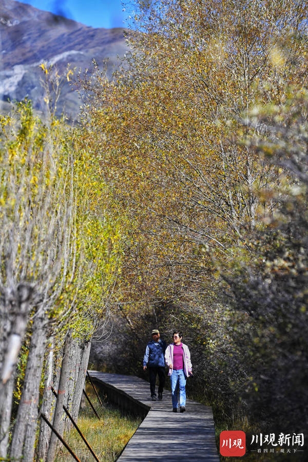 10月14日,甘孜州石渠县邓玛湿地旅游景区秋色正盛。邓玛湿地内的正科湿地公园拥有甘孜州全州面积最大的沙棘林,万亩野生沙棘林颇为壮观。