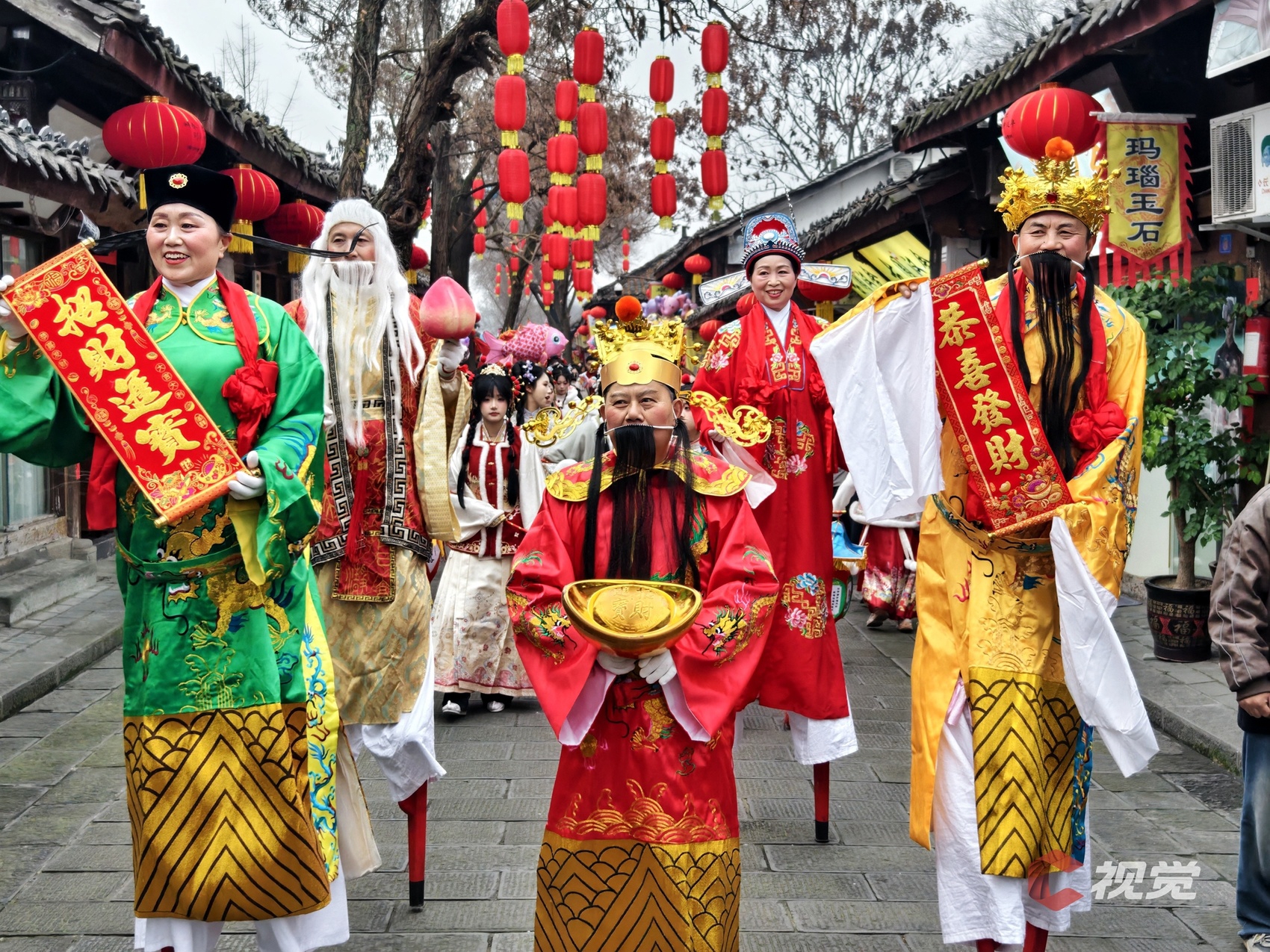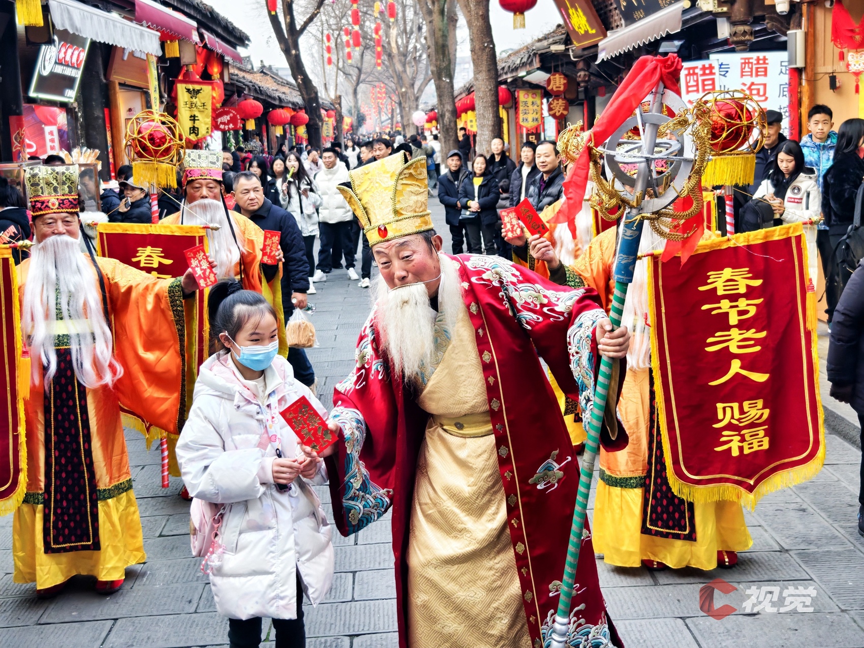1月22日,“春节老人”在古城街道赐福。C视觉 王玉贵 摄