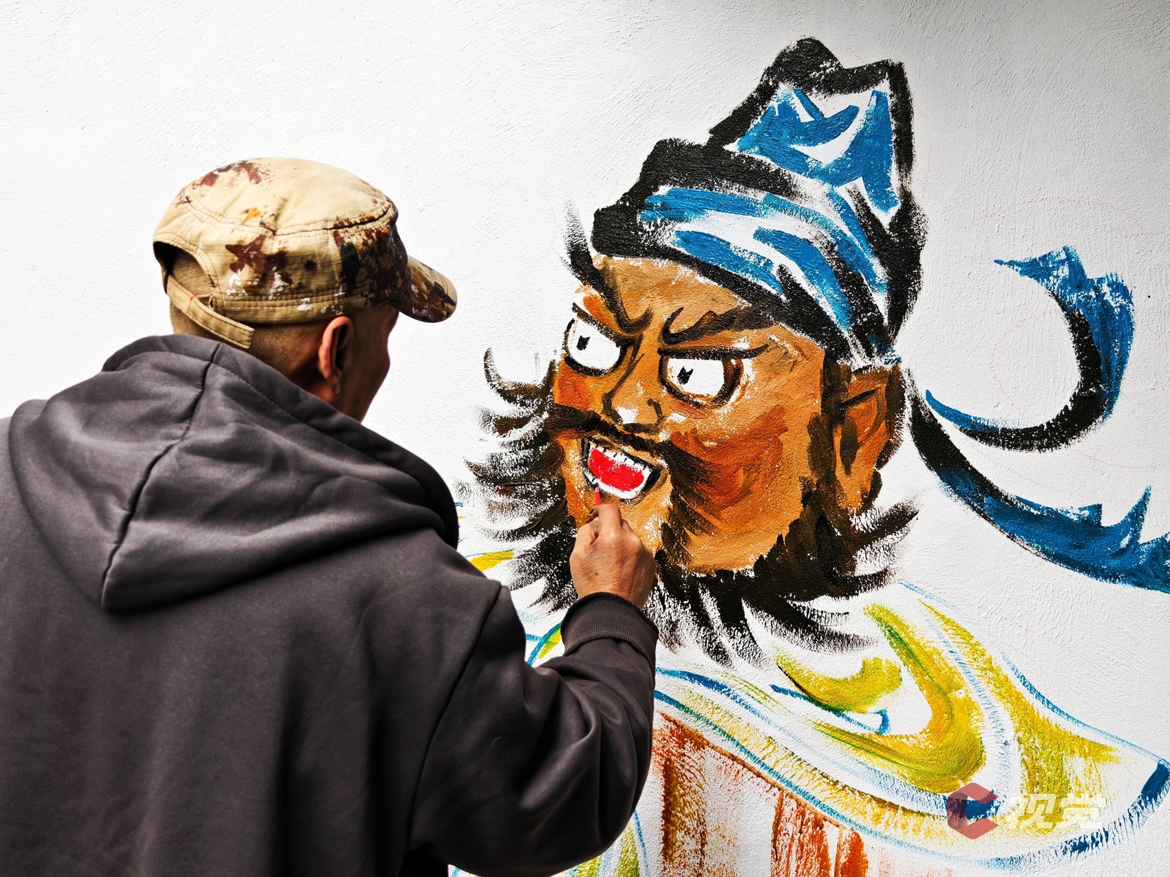 1月20日,四川省第六批省级非物质文化遗产代表性项目——门神画非遗传承人张桅正在墙上绘制张飞的门神画,迎接即将到来的蛇年新春。C视觉 梁德 摄