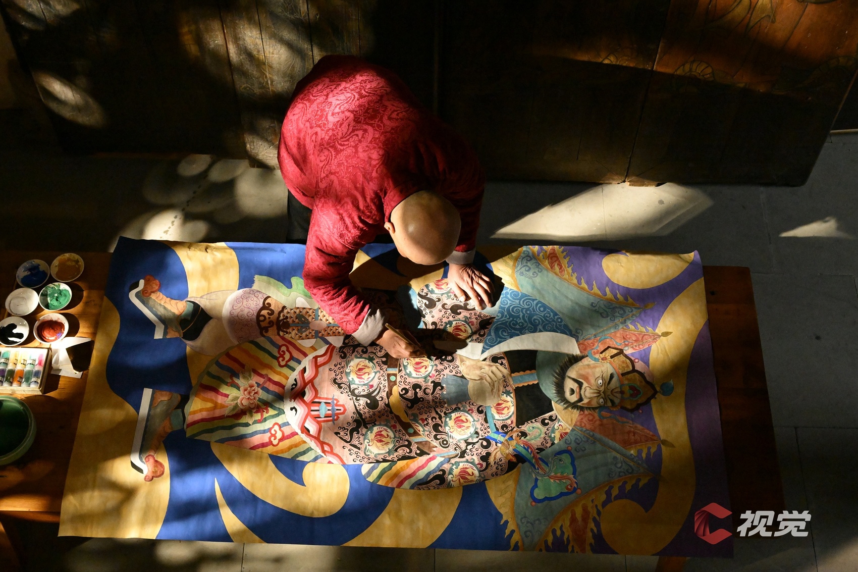 1月17日,四川省第六批省级非物质文化遗产代表性项目——门神画非遗传承人张桅,正专心致志绘制一副门神画。随着春节临近,等待他绘制和修复的门神订单已有10多对。C视觉 张晓东 摄