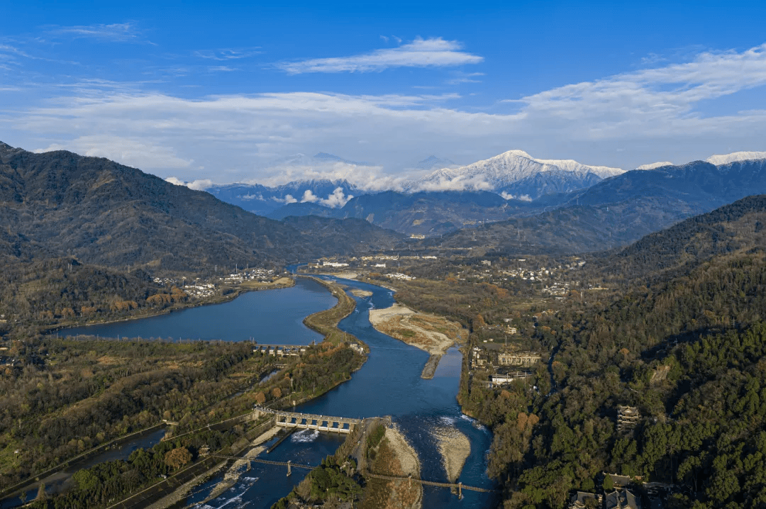 冬日里的都江堰,远处是皑皑白雪 (何勃 摄)