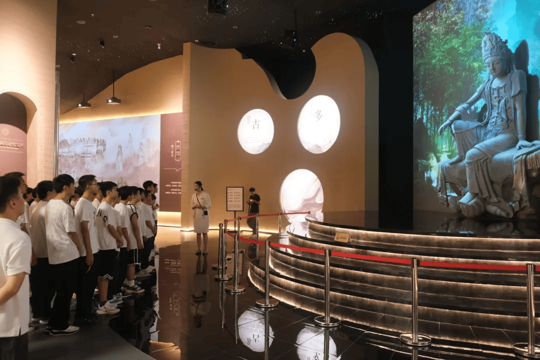 学生们在安岳石窟数字展示中心听讲解员讲述千年石窟故事(漆世平 摄)