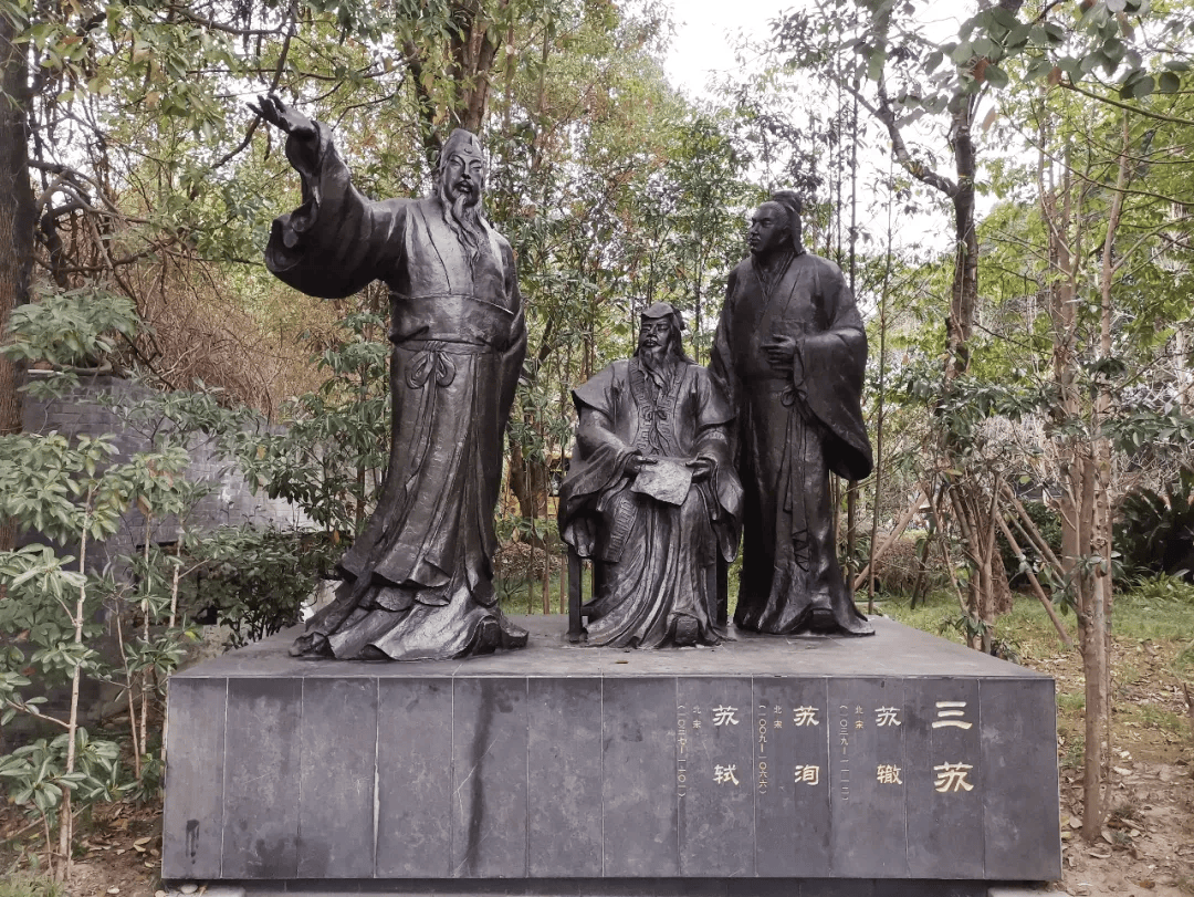 “三苏”塑像(蓬州闲士摄,图源:四川方志图库)