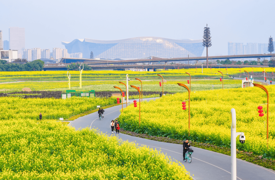 而如今,这份“熟视无睹”早已变成了“满心欢喜”。春日里,赏油菜花成了成都人必做的“仪式感”:交子百业园的“星空”花田、崇州五星村的花海小火车、金堂三溪镇的油菜花季,每到春日便人山人海,市民们带着家人、约上朋友,漫步花海、拍照打卡,感受春日生机;赏完花,顺手摘一把新鲜的红油菜苔,带回家烹饪,便是延续千年的春食习惯,经霜的油菜苔,更是游子心中最熟悉的家的味道。