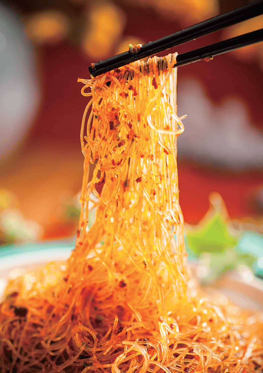 为什么一定要用龙口粉丝呢?胡廉泉先生说:“龙口粉丝丝条匀细,纯净光亮,整齐柔韧,洁白透明,烹调时人水即软,久煮不碎,吃起来清嫩适口,爽滑耐嚼,是烹制蚂蚁上树这道菜的首选原料。”