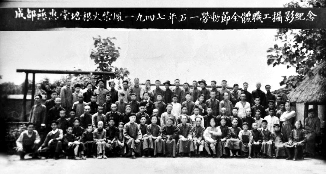1947年5月1日,成都慈惠堂培根火柴厂全体职工合影。