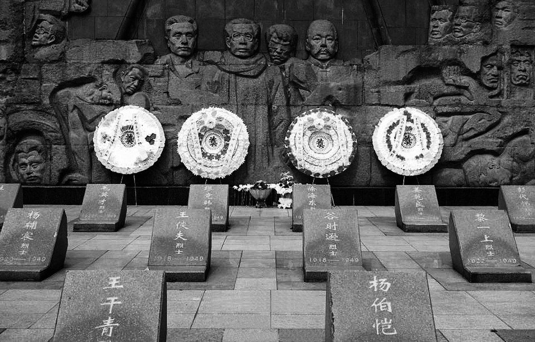 成都十二桥烈士陵园,前排左一为王干青纪念碑位。