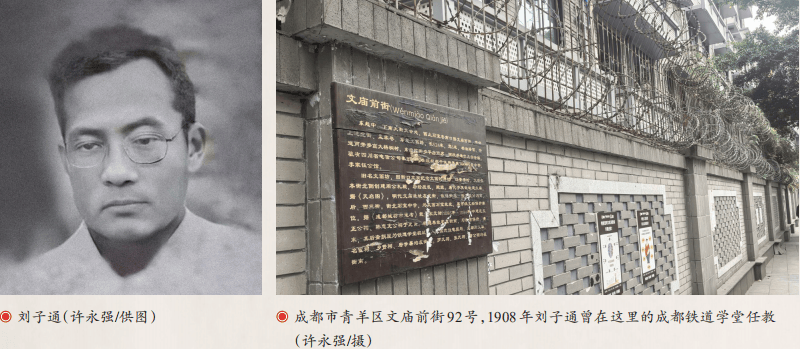 很少有人知道,除去刘子通的家乡湖北,他在四川成都也留下了坚实的足迹。刘子通在四川成都铁道学堂担任教习的3年多时间里,积极在学生中宣传革命进步思想,在成都学生间很有声望,被郭沫若称为“政治启蒙老师”。