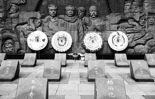 成都十二桥烈士陵园纪念碑位,前排左一为王干青。