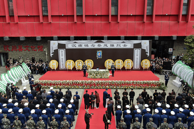 2022年10月26日,在汶川县博物馆前,隆重举行蔡茂强烈士追悼会。