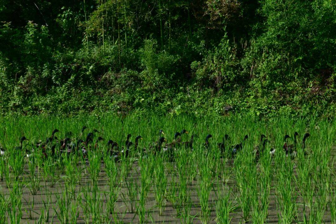 三夏时节,水暖田肥,分蘖末期的水稻禾苗在绵竹大地扎根生长。在林田交错区域,因低矮灌木丛易生虫害,农户摒弃传统化学除草防虫手段,引入鸭子充当“除草治虫大军”。鸭子在稻田穿梭,啄食杂草害虫,有效遏制了杂草害虫滋生,控制了福寿螺和钉螺危害,减少化学农药污染,保障大米绿色安全。