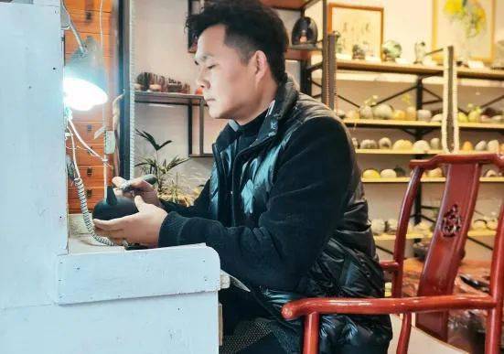 乔正权手持峨眉石壶介绍其特色
