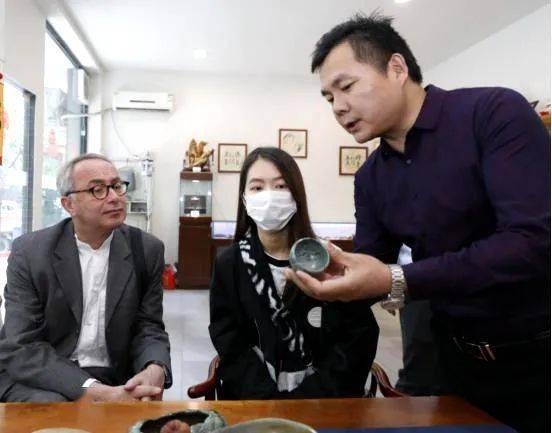 刘军敏先生向法国驻成都总领事白屿淞先生介绍峨眉石壶