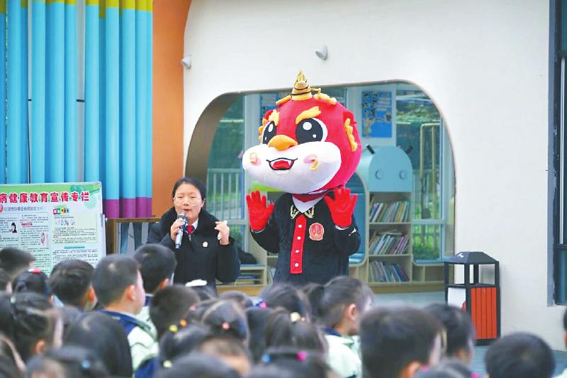12月4日国家宪法日,“泸法麒麟”志愿服务队叙永分队的志愿者们走进校园。 叙永县法院供图