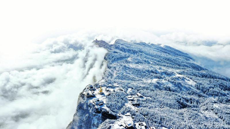 银装素裹的峨眉山金顶冬季美景。