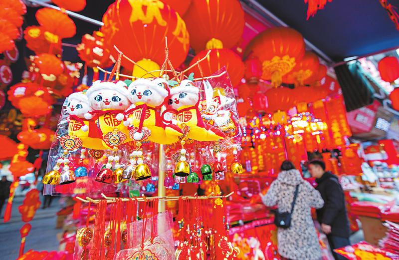 12月25日,在遂宁经开区的新市场,市民在购买新春饰品。 吴奉家 摄(C视觉)