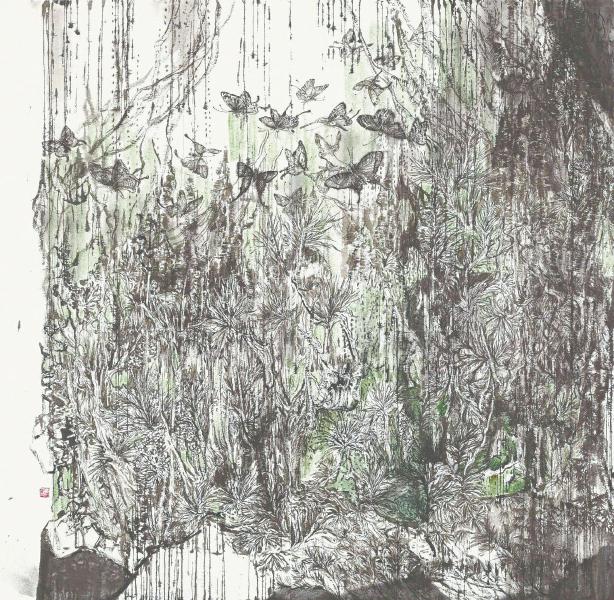 成都画院专职画家卢贞,笔下动辄是两米以上的大画,作品中尽显遒劲的线条和笔墨,结构、造型都十分大气奔放。过去,卢贞的创作以纯山水画为主,近年来在山水之间又加入了许多动物与植物元素,似乎渴望更具有生命力的现代表达。下笔果断、充溢张力、生动活脱的表现特色,已成为卢贞作品的标志性风格,而这一切都建立在审美优先、技术强化和独特绘画才能的基础上。在意象和审美上,她描绘繁茂深厚、浓郁华滋的生命气象,再加上酣畅淋漓的用笔和浓重深厚的用墨,呈现出自然万物生生不息的力量,形成了卢贞独特的绘画语言。 (余如波)