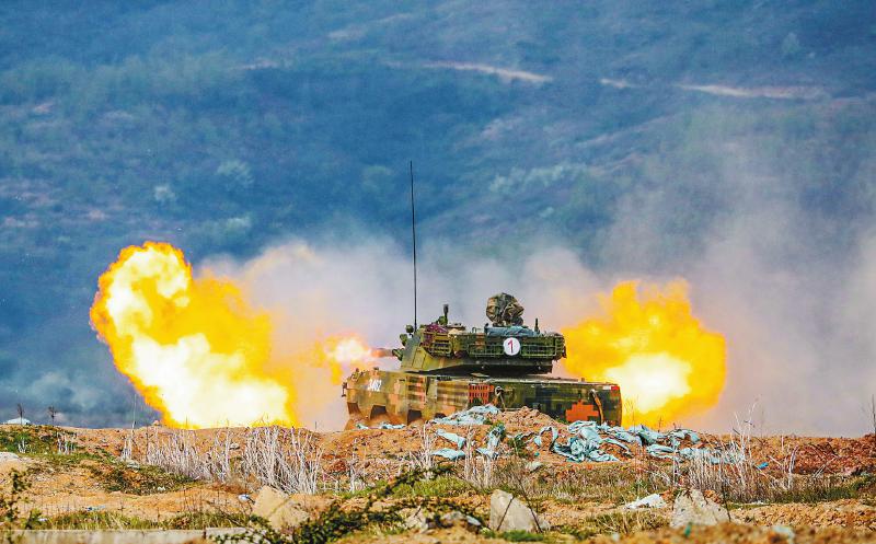 1月2日,陆军第72集团军某旅在野外陌生地域组织突击车分队进行实弹射击训练。