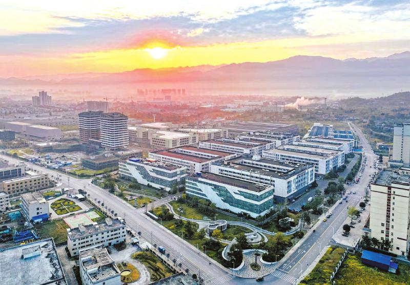 晨曦映照下的四川华蓥山经济开发区电子信息产业园。