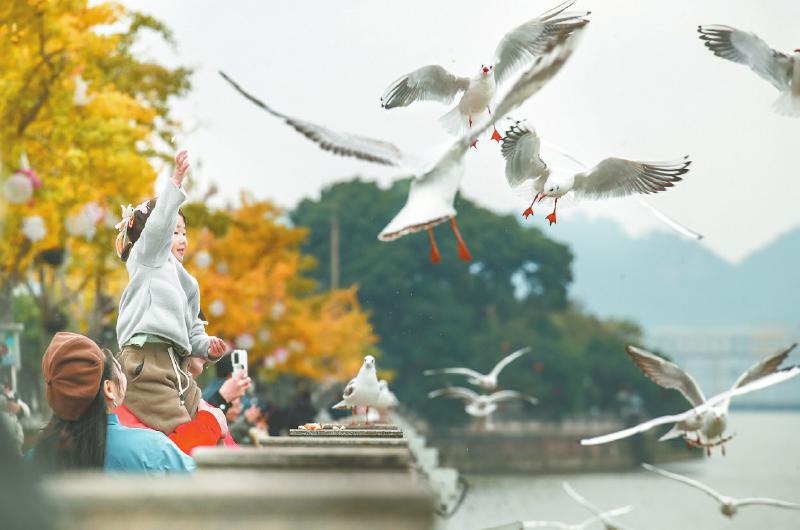 入冬以来,以红嘴鸥为代表的大批候鸟飞临雅安市雨城区,赶赴一年一度的冬日之约。雅安观察 黄刚 摄