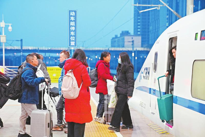 1月6日上午7时40分左右,D962次动车组卧铺列车到达成都东站。 四川日报全媒体记者 卢春阳 摄