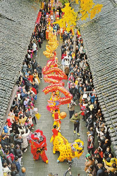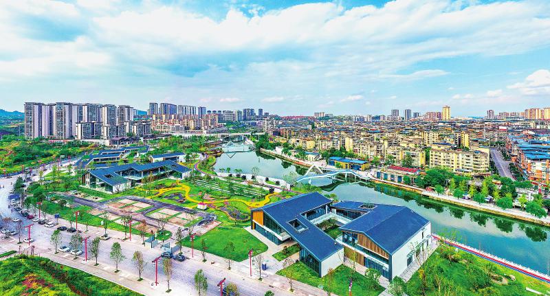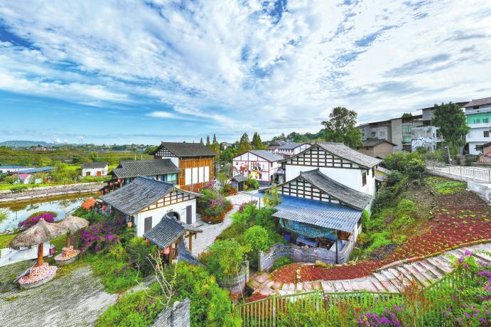 利用本土资源发展“ 红色、绿色、特色”“三色旅游”的华蓥市禄市镇凉水井村,在蓝天白云映衬下显得格外美丽。