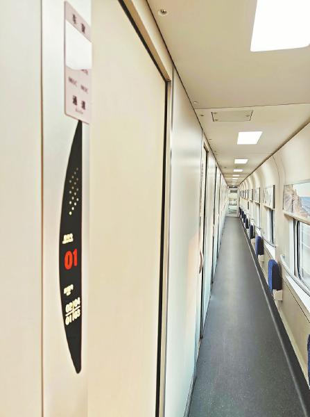 D962 次 动车组卧铺列车卧铺车厢走廊。