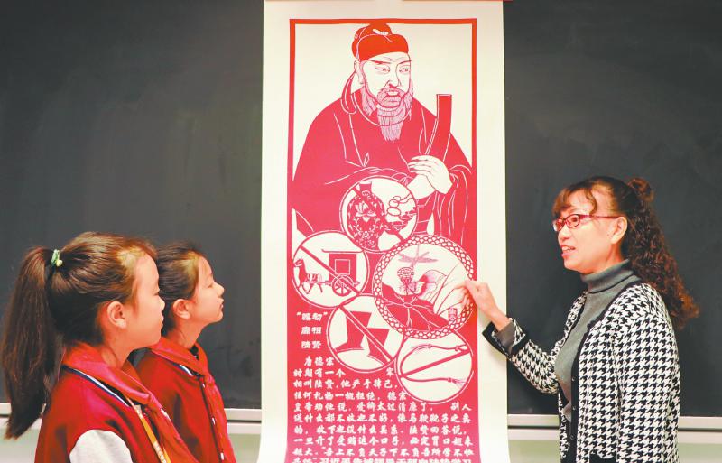 “廉洁文化进校园”活动中,老师为学生讲解传统文化中的廉洁故事。