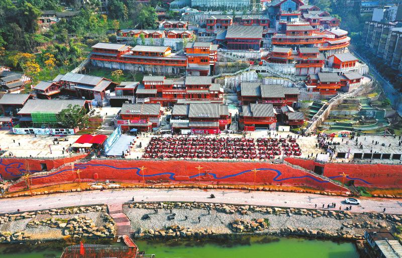 1月5日,武胜县沿口古镇在嘉陵江畔举办了第12届庖汤民俗文化活动,吸引上千名游客来到这里游古镇、看表演、吃庖汤,共享民俗盛宴,喜迎新春佳节。 唐晓瑜 摄(C视觉)