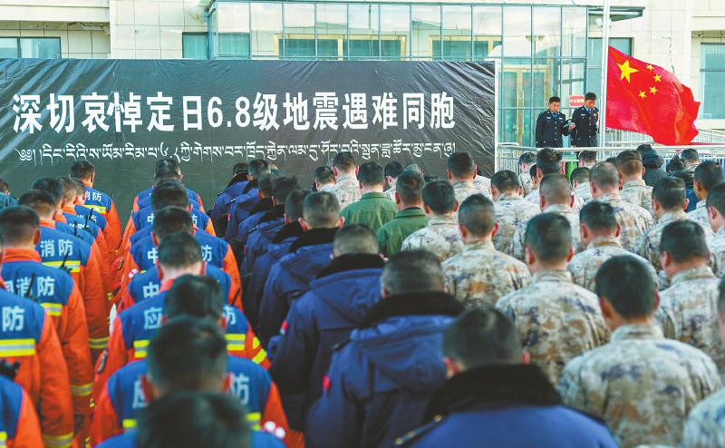 1月13日上午9时30分,西藏定日6.8级地震遇难同胞悼念仪式在受灾最严重的长所乡举行。 新华社记者 丁增尼达 摄