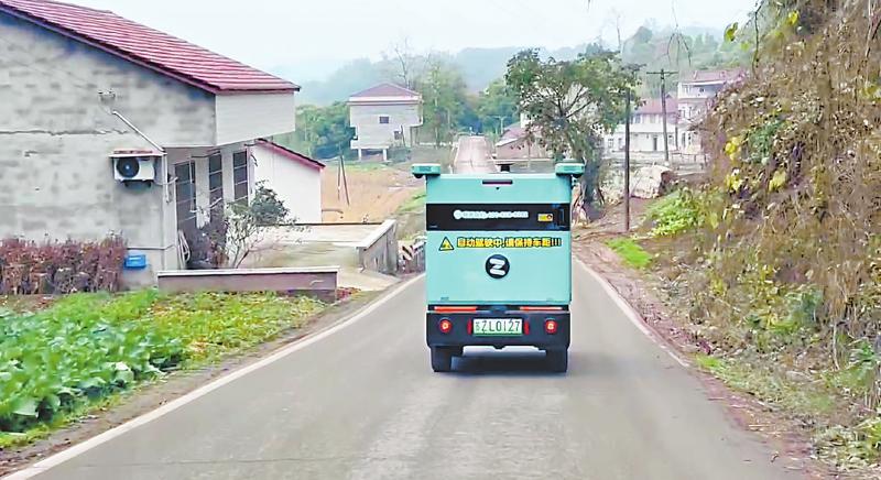 无人配送车行驶在乡道上。四川日报全媒体记者行晓艺摄