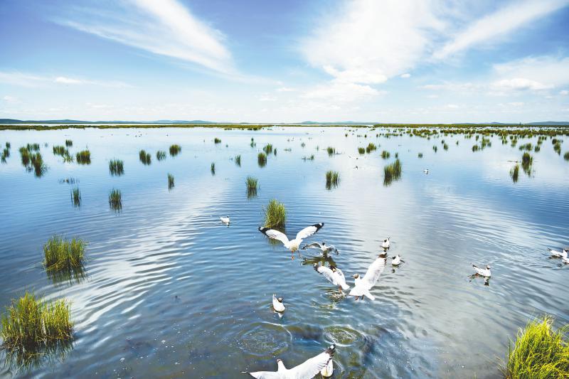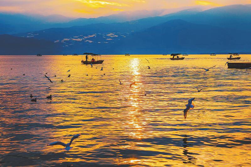 2024年12月15日拍摄的西昌邛海国家湿地公园晨曦美景。