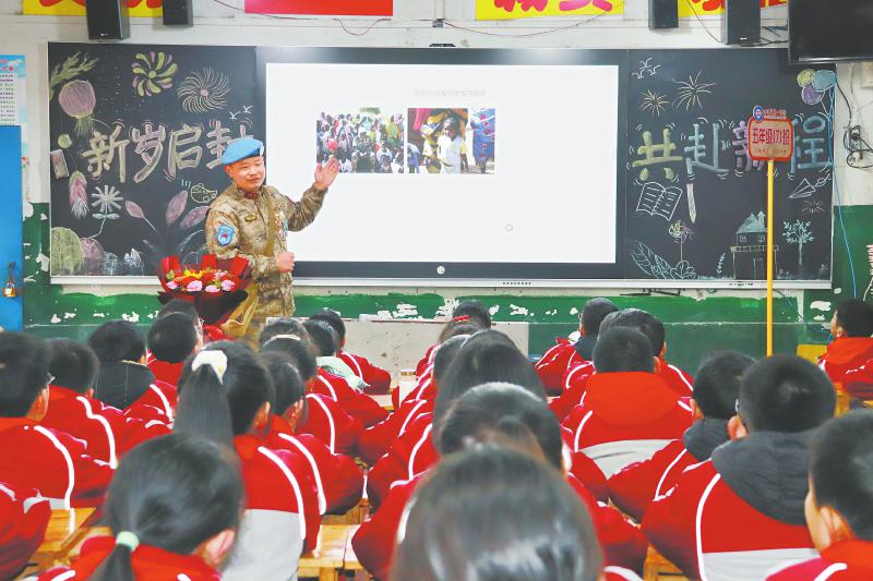 达州市退役维和老兵王德涞走进学校讲述维和故事。