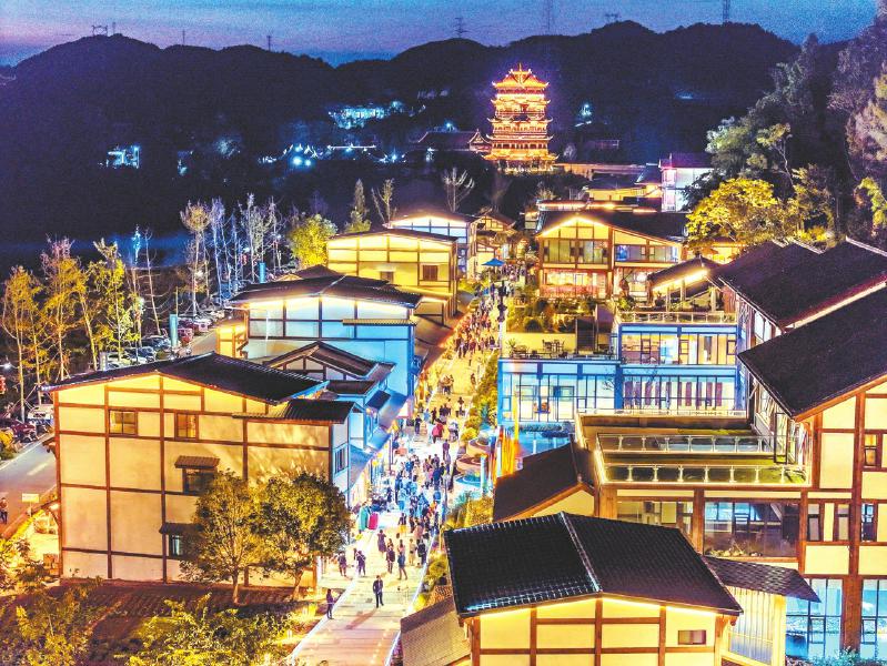 夜幕下的射洪广兴镇双江村,灯光璀璨,成为网红打卡点。