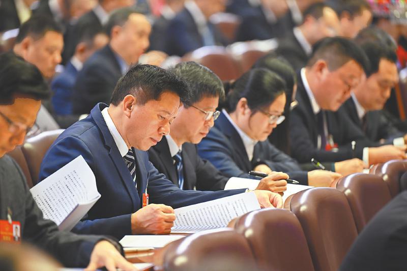 省十四届人大四次会议上,代表们认真审议政府工作报告。 四川日报全媒体记者 杨树 摄