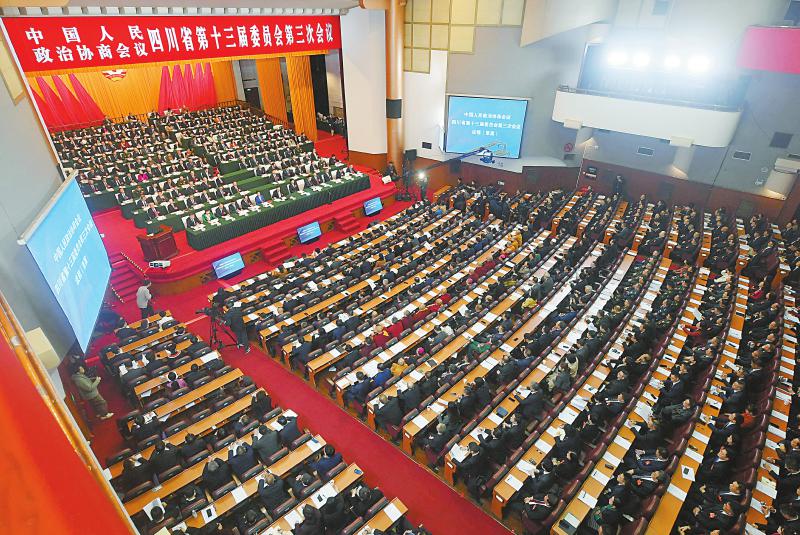 1月20日,王万民委员(前排中)在联组会议上发言。四川日报全媒体记者 向宇 摄