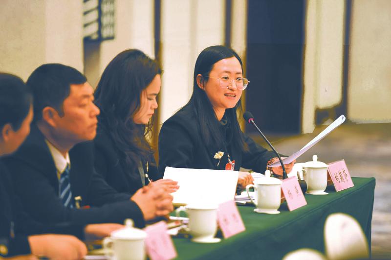 1月22日,刘莉莎代表(右一)在小组会议上发言。四川日报全媒体记者 李向雨 摄