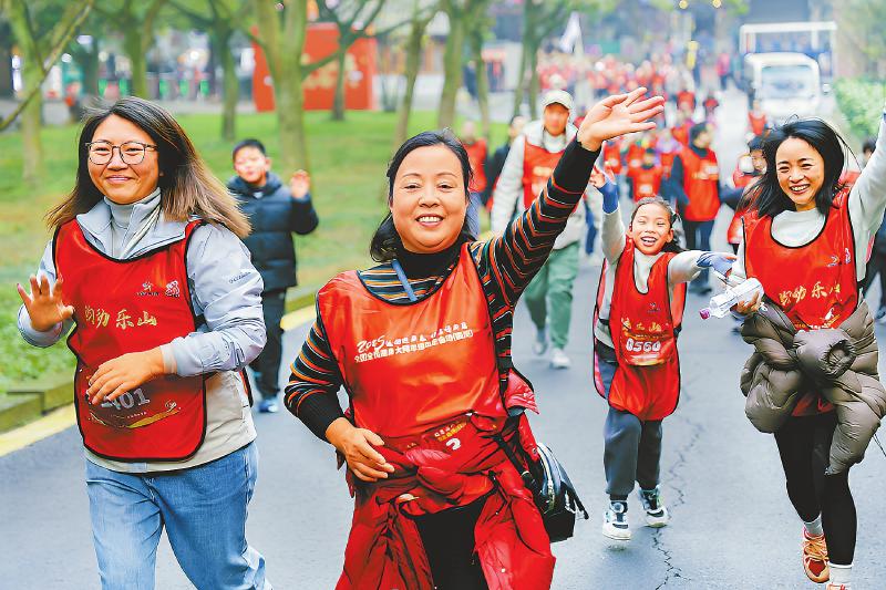 一月十八日,二0二五年全国全民健身大拜年活动主会场(四川)启动仪式在乐山大佛景区举行。两千余名健身爱好者从乐山大佛牌坊出发,以运动健身、登高望远的方式开启健康活力新一年。四川省体育局供图