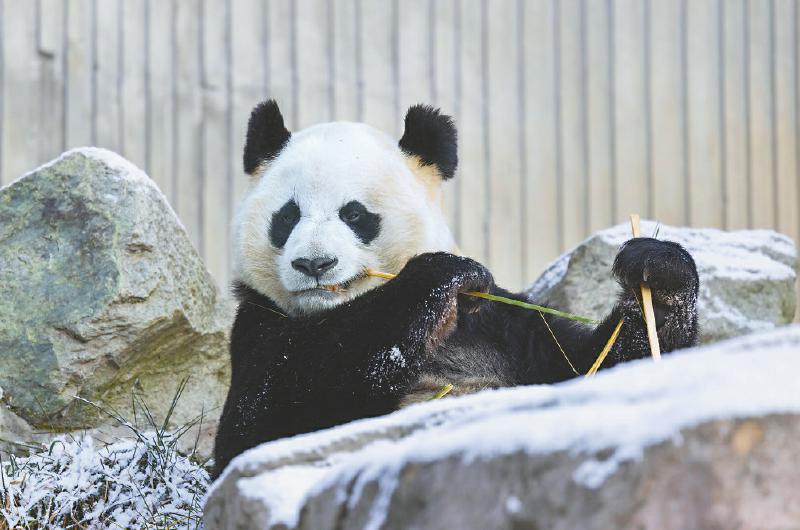 位于汶川县卧龙自然保护区的中华大熊猫苑,新年第一场冬雪后银装素裹,大熊猫在雪地里尽情撒欢。韦洪涛 摄(C视觉)