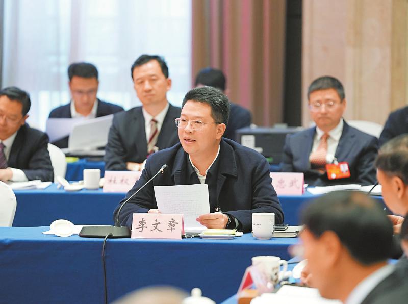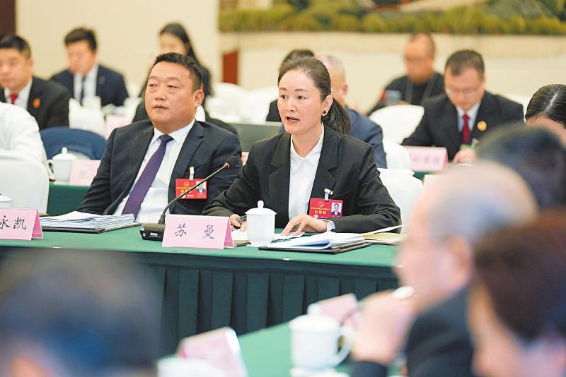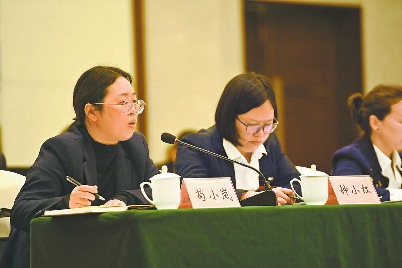 1月23日,苟小岚代表(左一)围绕企业“智改数转”、降本增效进行发言。四川日报全媒体记者 李向雨 摄