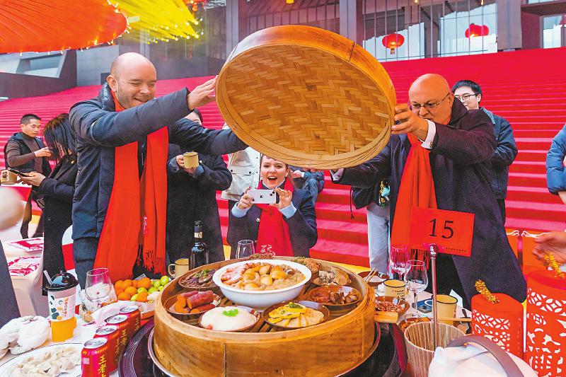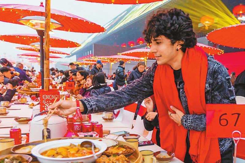 1月23日,四川天府新区秦皇湖畔,一场千家团年饭不仅让中国人感受到了年的味道,也吸引了外国友人的加入,大家一起同欢乐、迎新春。 林漫 摄(C视觉)