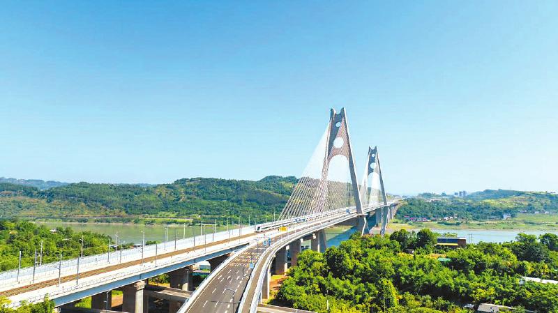 图为成宜高铁和渝昆高铁共用的过江通道——宜宾临港长江大桥。两条时速350公里的高铁在这里相会,进一步促进四川南向开放发展。去年,该大桥还实现高铁、汽车同层通行,对推动宜宾经济发展具有重要意义。 宜宾观察 罗顺 摄