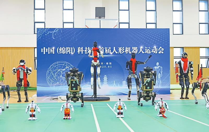 1月23日,中国(绵阳)科技城首届人形机器人运动会在云泉路学校举行。此次运动会汇聚了天链人形机器人、乐聚机器人等来自绵阳的优秀机器人及技术团队,设置了人机共舞、平地竞走、团体接力、机器拜年等项目。 陈冬冬 摄(C视觉)