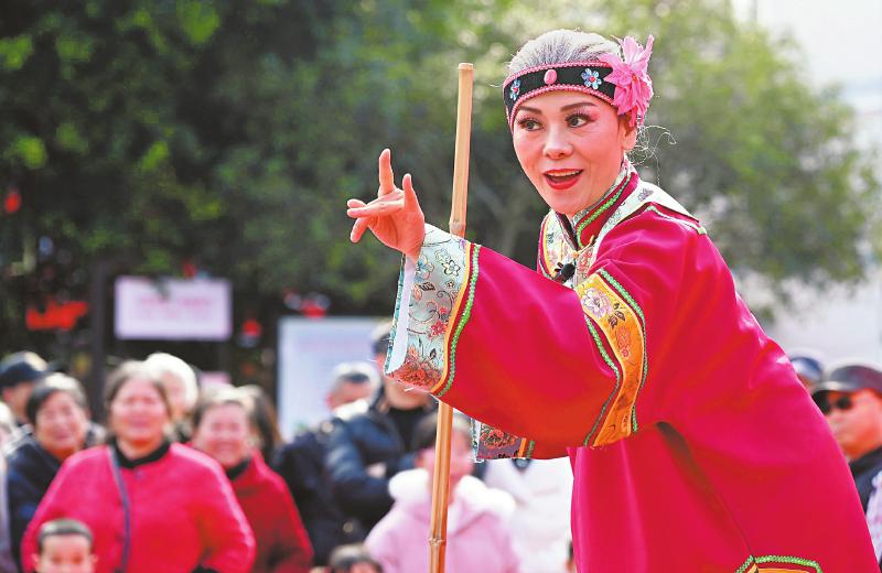 1月26日,川剧演员为内江市东兴区的戏迷表演折子戏《王婆找鸡》。 兰自涛 摄(C视觉)