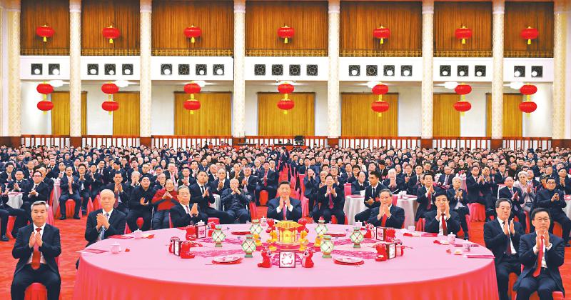 1月27日,中共中央、国务院在北京人民大会堂举行2025年春节团拜会。党和国家领导人习近平、李强、赵乐际、王沪宁、蔡奇、丁薛祥、李希、韩正等同首都各界人士欢聚一堂、共迎佳节。 新华社记者 谢环驰 摄