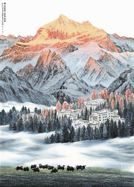 雪域欢歌之藏家新村(中国画),尺寸:280cm×200cm。李兵作