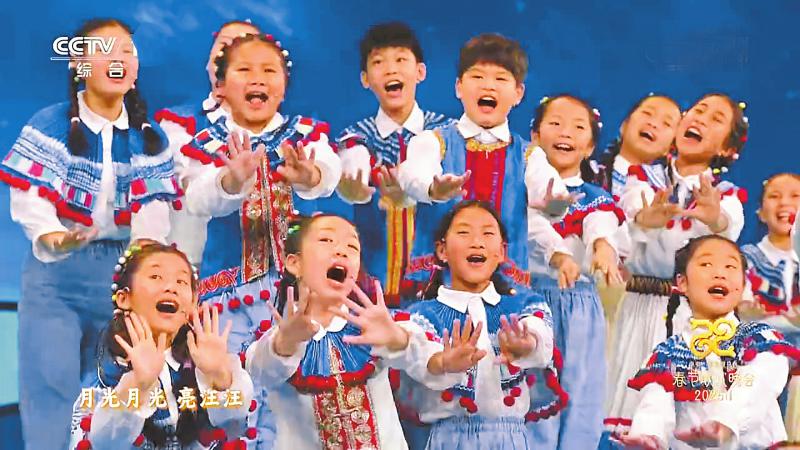 来自四川省凉山州的妞妞合唱团参加了歌曲《玉盘》的表演。