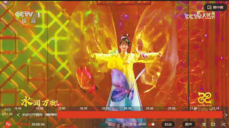 一袭长裙的“蝴蝶仙子”李子柒,通过表演展示非遗魅力。 (总台春晚视频截图)
