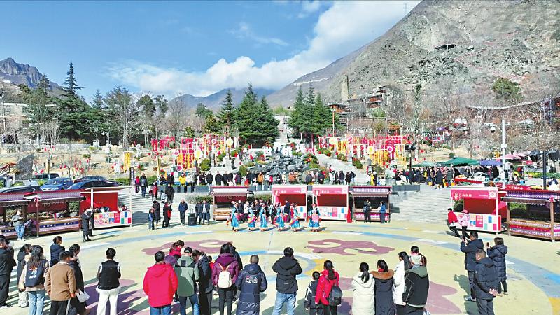 桃坪羌寨当地群众为游客表演舞蹈。理县融媒体中心供图