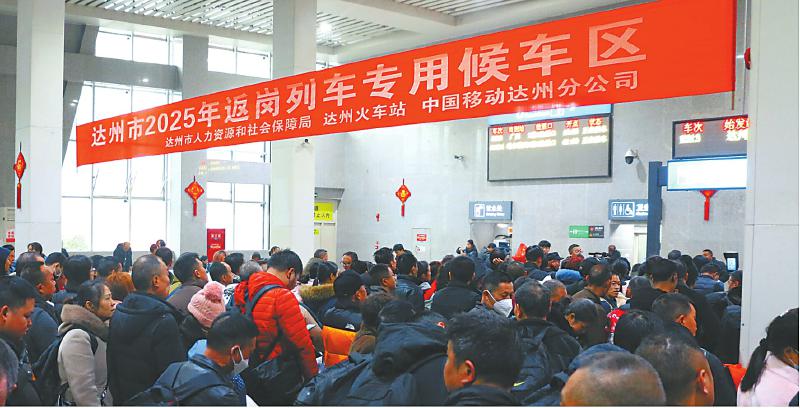 一月三十一日,达州市千余名农民工在等待上车。达州市人力资源和社会保障局供图